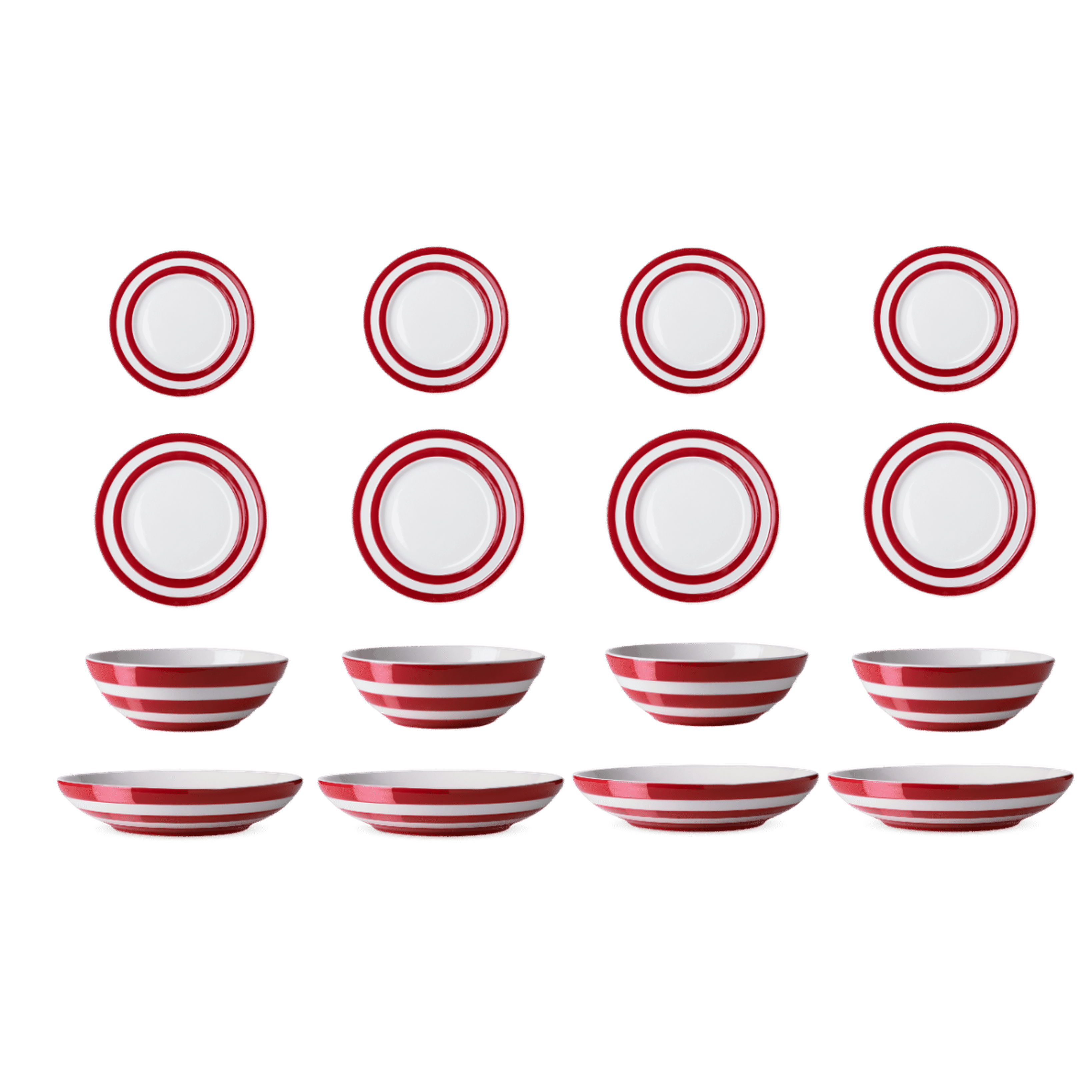 The 16 piece Cornishware Plate & Bowl Set includes 4 x Pasta Bowls, 4 x Side plates, 4 x Cereal bowls and 4 x Dinner Plates This set is both beautiful and functional. Buy as a set and save!